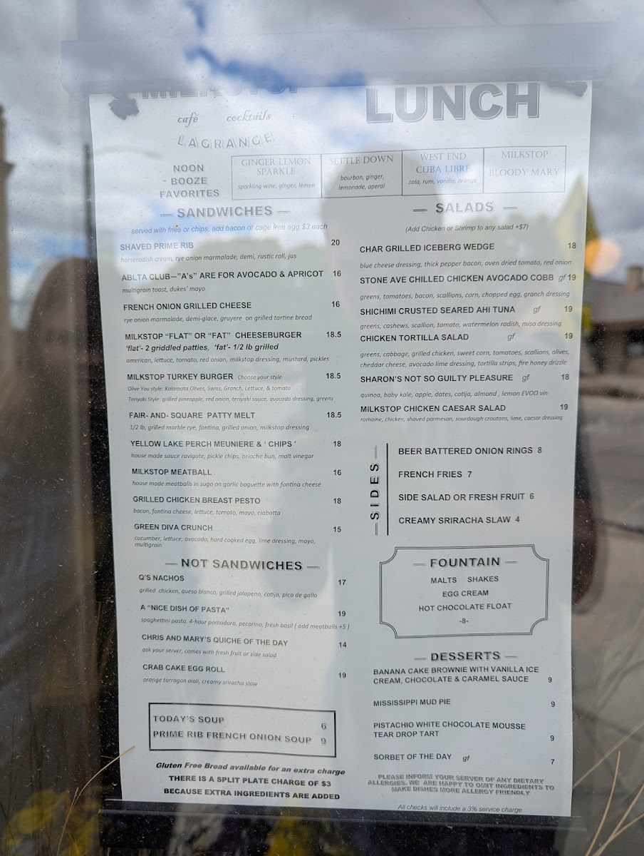 Nestled in the charming town of La Grange, MilkStop offers a delightful fusion of flavors that elevate dining to new heights. Their dinner menu features standout dishes like the Slagel Farm Half Chicken Marbella, marinated to perfection, and the indulgent Blackened Jumbo Shrimp 'N Gruyere Grits. Each dish is artfully presented, providing a feast for both the eyes and the palate.